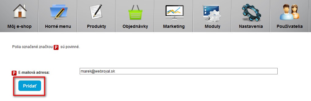 Týchto zákazníkov viete následne pridať cez administráciu: