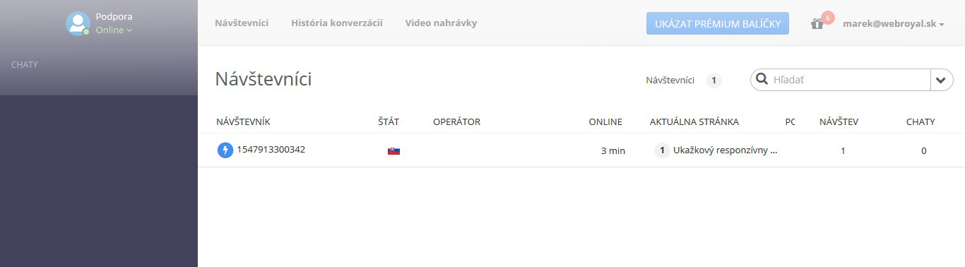 Online chat s notifikáciou príchodu zákazníka