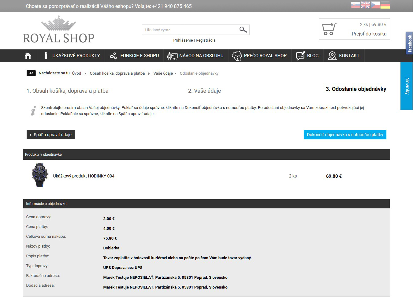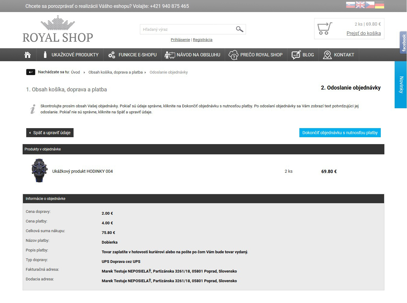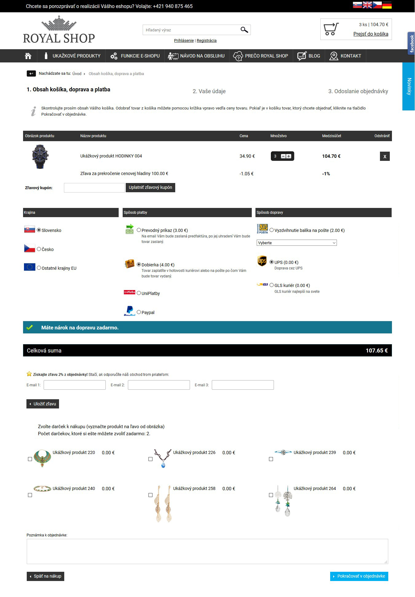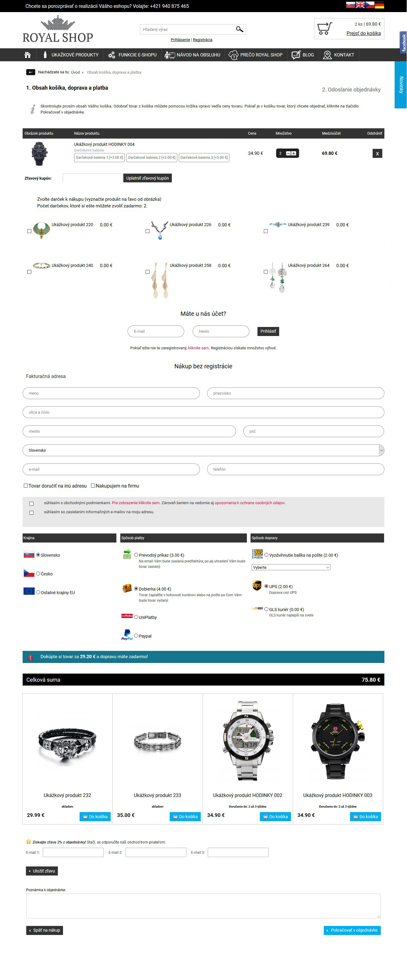 Po prechode do košíka tu nájdete iba zoznam produktov spolu s možnosťami platby a dopravy.