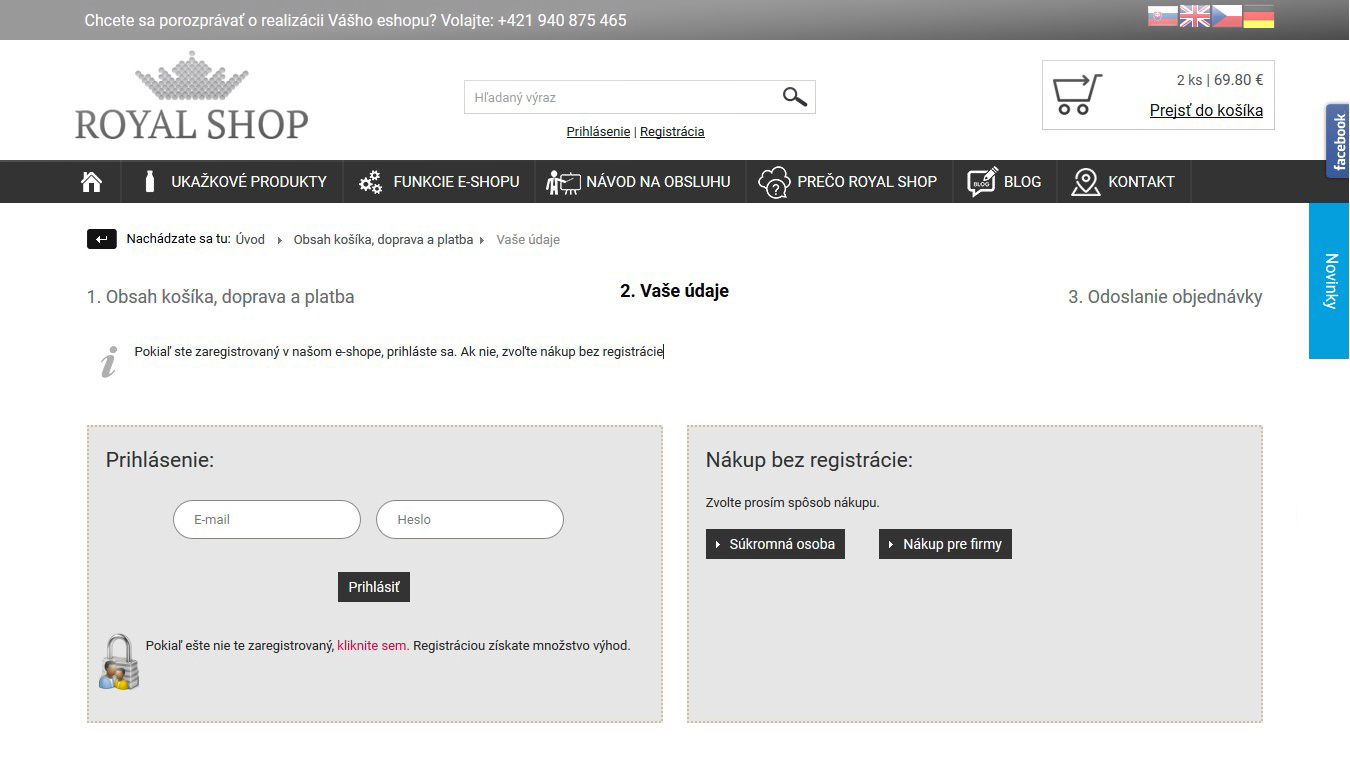 Voľba pre nákup ako registrovaný či neregistrovaný zákazník (spolu s výberom jeho typu - súkromná osoba/firma) sa presunula do druhého kroku.