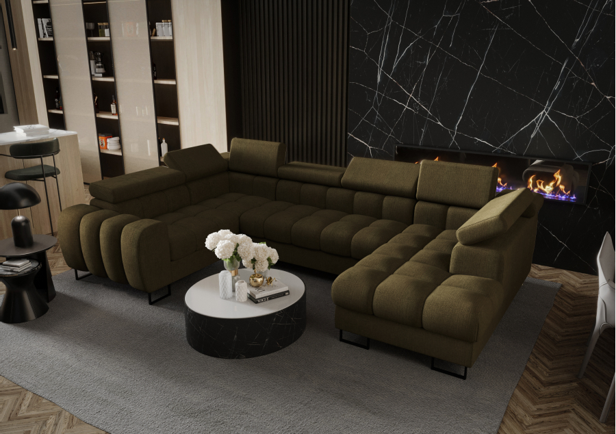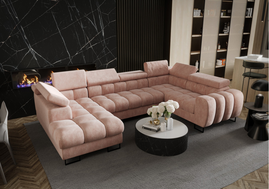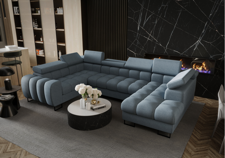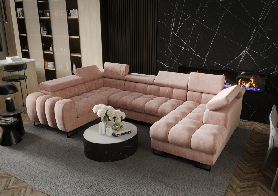 Kolekcia Alpina sa stane netradičným dizajnovým doplnkom Vašej obývačky. Originálny a predovšetkým funkčný štýl celej série zabezpečujú polohovateľné opierky hlavy. Veľkou výhodou oproti iným sedačkám podobného typu je, že pri rohových sedačkách, ako aj sedačkách v tvare U, sú polohovateľné aj opierky v rohu sedačky, čím je zabezpečená maximálna funkčnosť. Nožičky tejto série si takisto zaslúžia pozornosť, nakoľko sú tiež sami o sebe dizajnérskym skvostom. Sú kovové, pochrómované a s výškou 9 cm dávajú možnosť prechodu väčšine vysávačov typu i-robot.