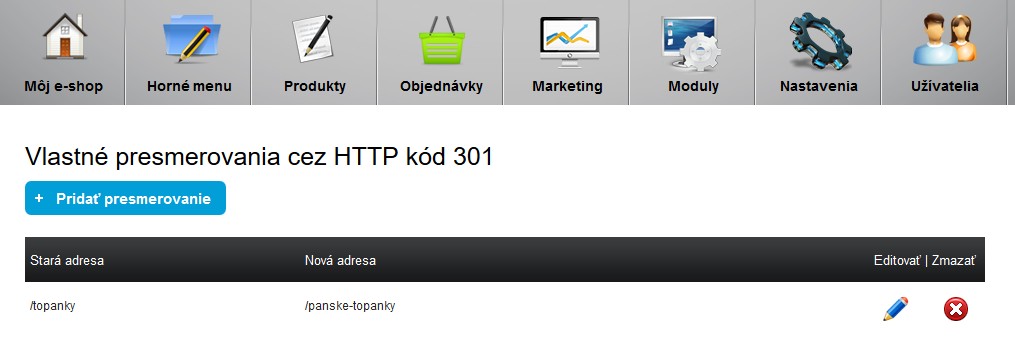 Možnosť presmerovania neexistujúcich URL adries, napr. po zmene názvu kategórie