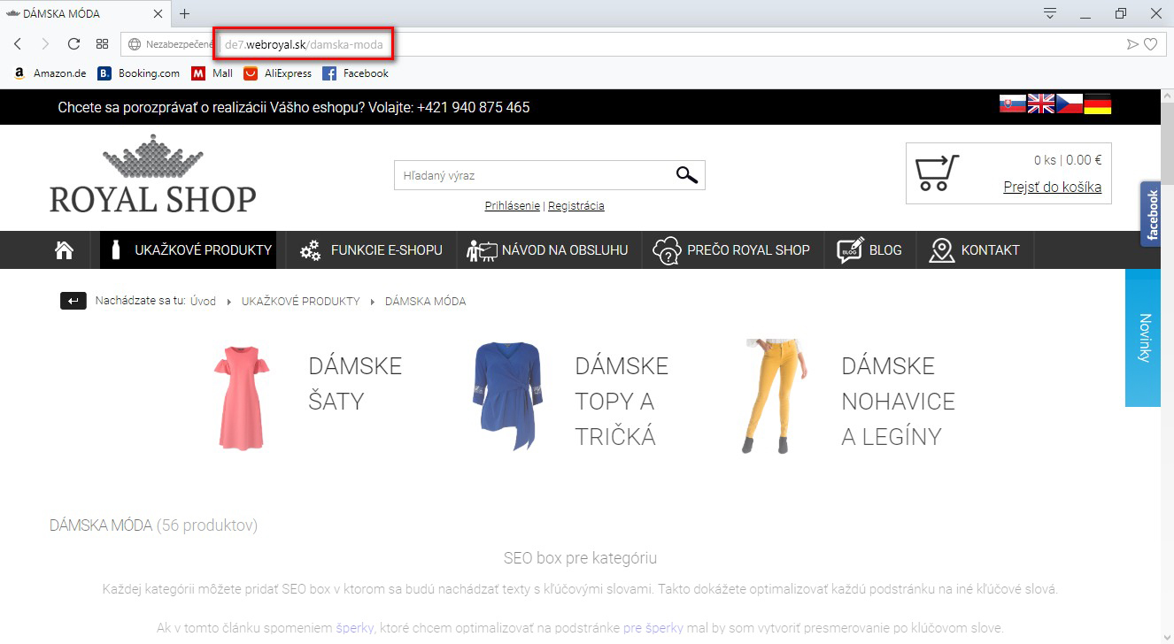 Každému článku, kategórií aj produktu dokážete nastaviť vlastnú URL adresu, ktorá už rovno za lomkou vedie na kľúčové slovo a je v najkratšom možnom tvare. Vďaka tomu tam máte iba podstatné údaje, čo je momentálne trendom z pohľadu SEO.