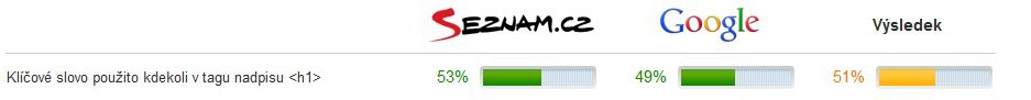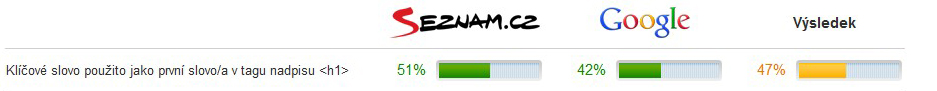 Ideálnou situáciou je, keď je kľúčové slovo použité ako prvé v nadpise, nie vždy je to však možné. Ide ale hlavne o upútanie zákazníka, pretože Google aj Seznam určite berie do úvahy počet zobrazení Vášho odkazu po danom slove a počet preklikov. Vďaka tomu vyhodnotí, že je pre zákazníka zaujímavý a začne ho podsúvať aj ďalším so snahou dať im čo najpopopulárnejší výsledok.