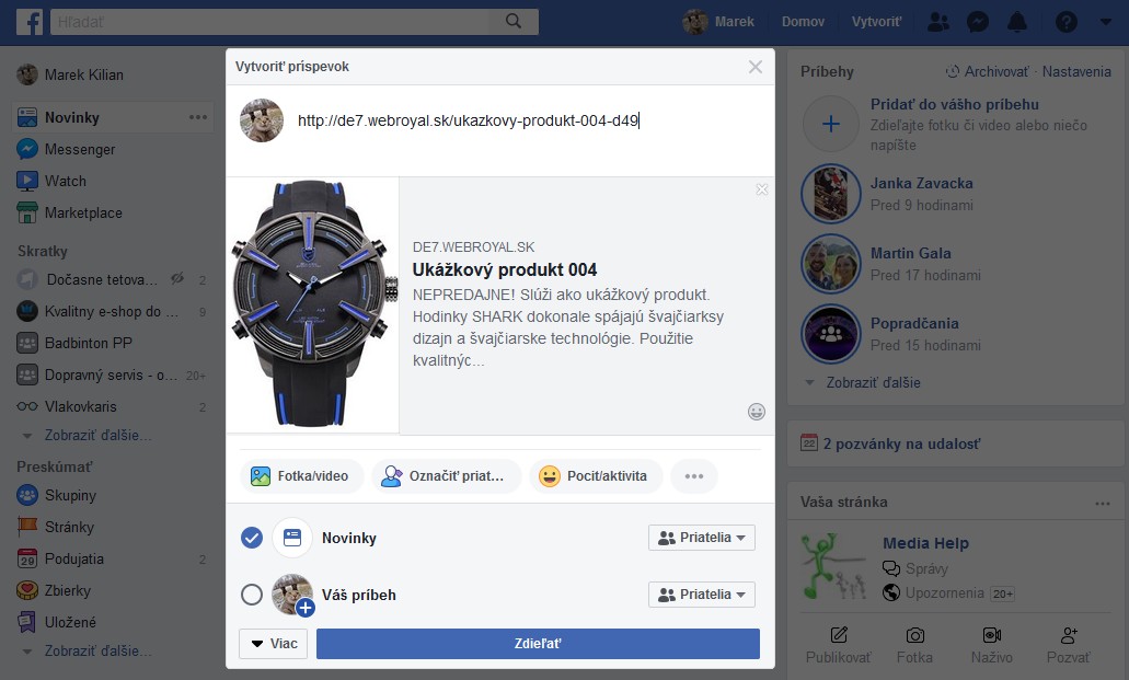 Možnosť po objednávke zdieľať objednaný produkt na Facebooku