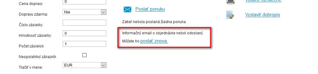 Detekcia odoslania emailu po objednávke