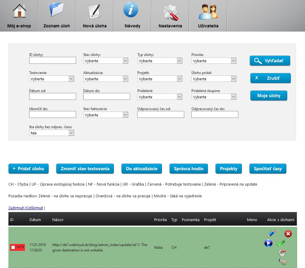 Zriadili sme manažment úloh, aby sme vedeli evidovať informácie o požiadavkách a vykonaných úpravách pre našich klientov. Každý z nich tam dokáže pridať nové zadanie a sledovať jeho stav vrátane počtu odpracovaných hodín. Ak si to pri vytváraní zvolíte, po jeho dokončení Vám odošleme e-mail.