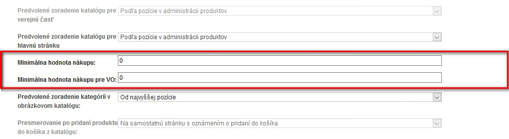 Minimálna cena objednávky nastaviteľná zvlášť pre maloobchod a veľkoochod