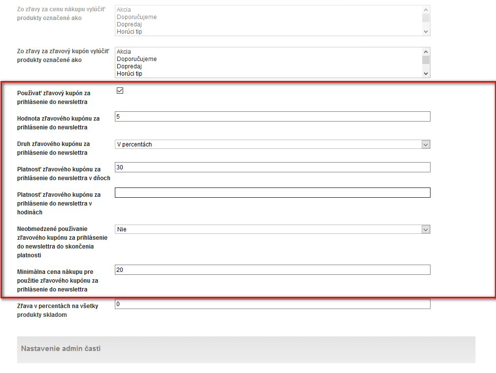Nastavenie zľavy za registráciu