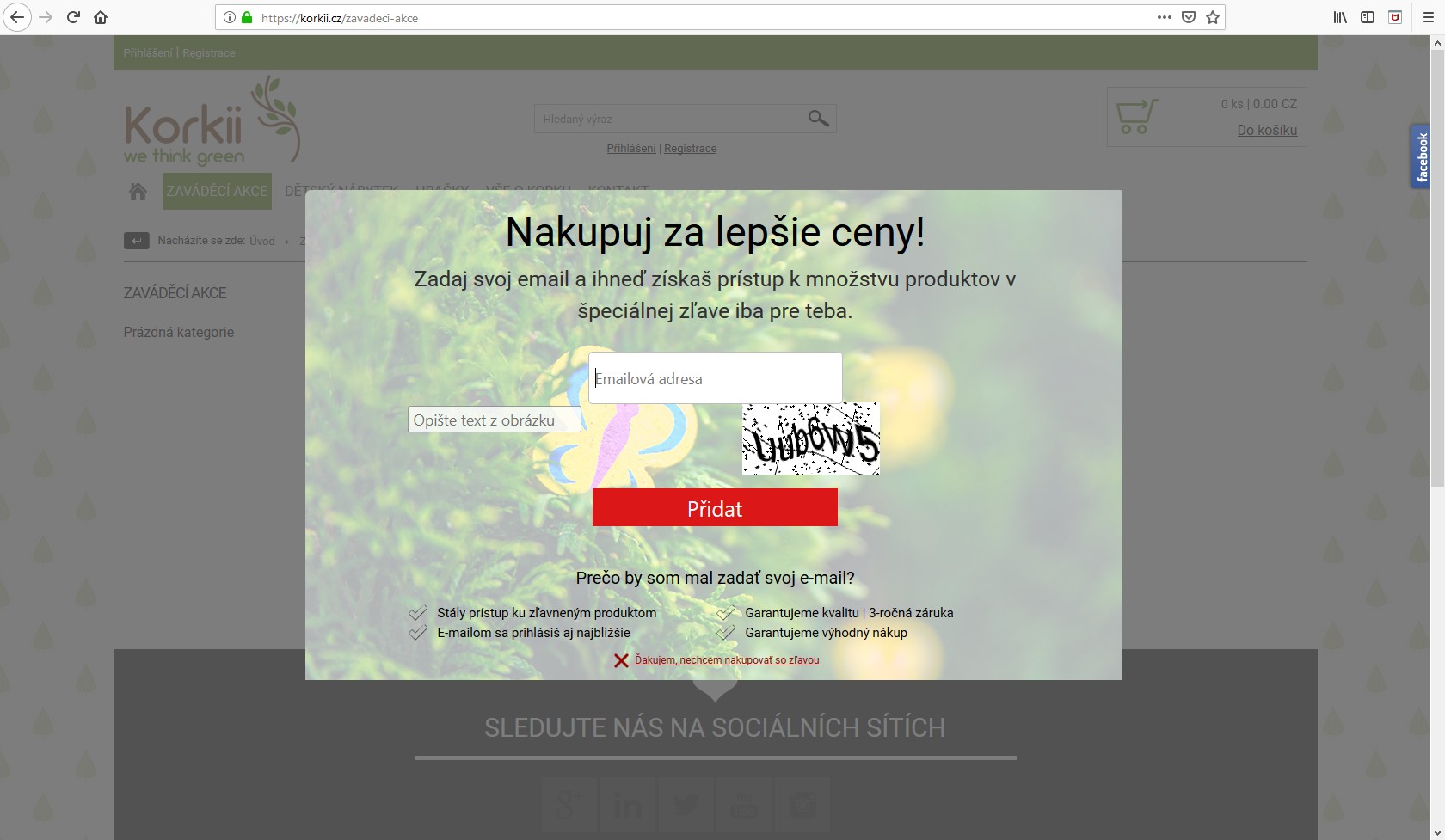 Zľavový kupón za prihlásenie do newslettera
